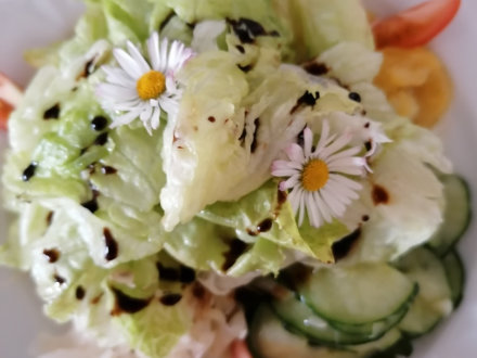 Mehlspeisen und Forellen aus eigenen Teichen. Gerne übernehmen wir